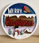 3mm mdf Merry Christmas Circular Plaque with Snowman and Robin