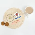 Printed Round Wooden Tea and Biscuits Tray – Engraved Look