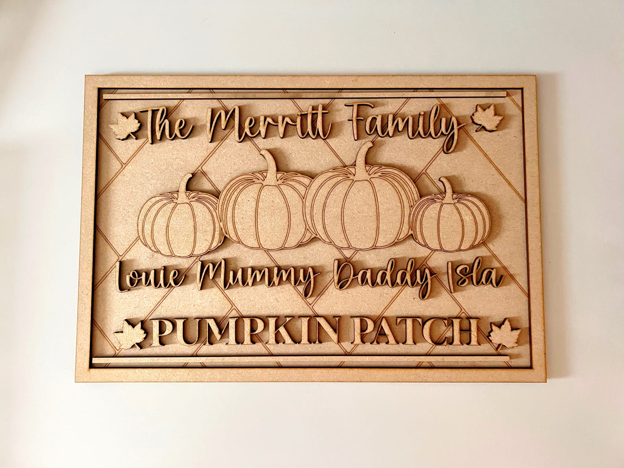 3mm mdf Personalised Pumpkin Patch Rectangular Sign