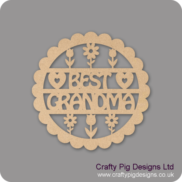 3mm MDF Best Grandma scalloped cirlce with flowers and hearts