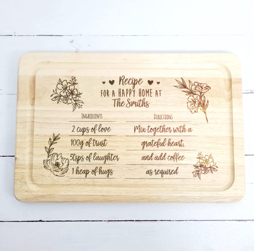 Engraved Rectangular Board – Recipe for a Happy Home