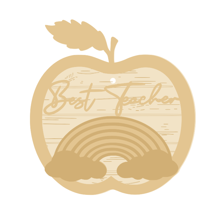 3mm mdf Little Treasures Best Teacher Apple Rainbow Bauble