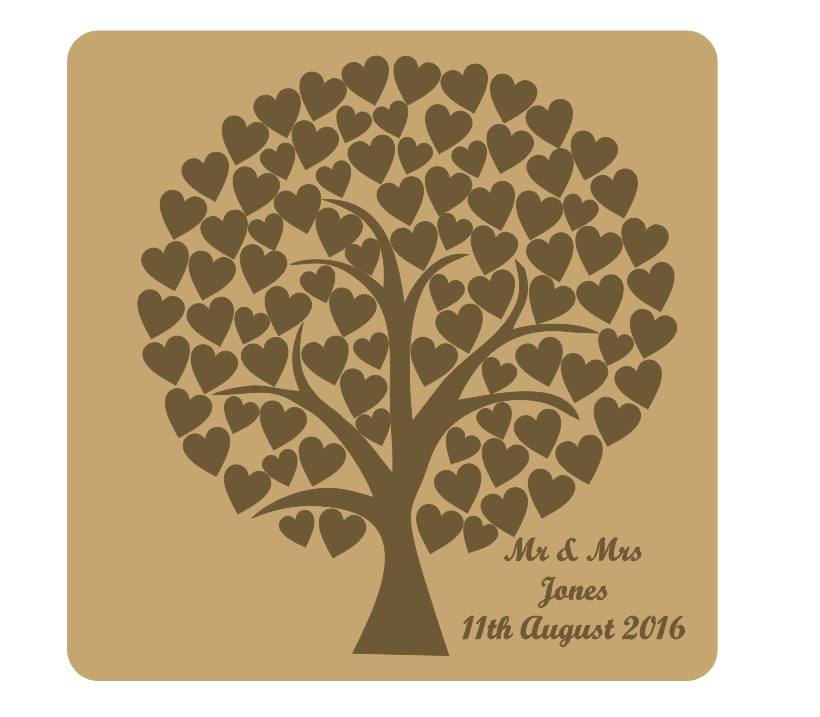 3mm MDF Rounded Wedding Heart Tree Guest Book With Engraved Backboard