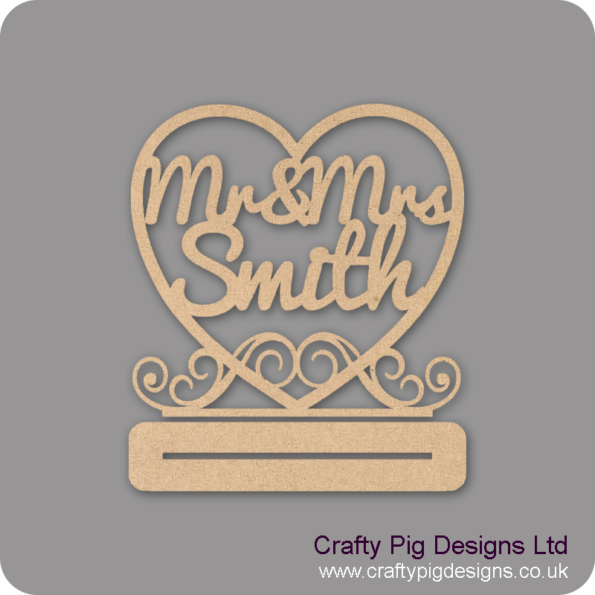4mm MDF Freestanding Wedding Heart on plinth with Mr & Mrs (Surname)