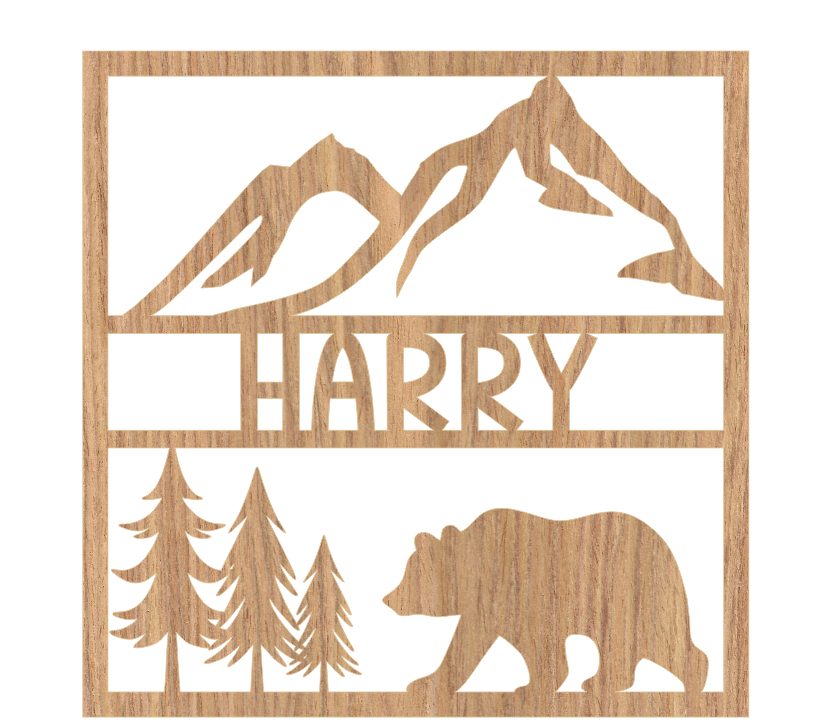 4mm Oak Veneer Bear and Mountains Personalised Plaque