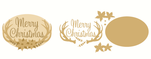 3mm layered Oval Merry Christmas with stag horns and poinsettia flowers