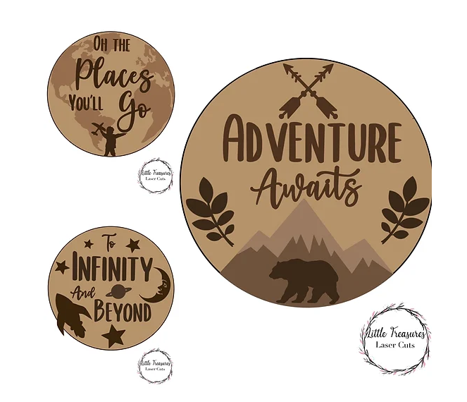 3mm mdf Adventure Awaits (Mountain scene) Plaque