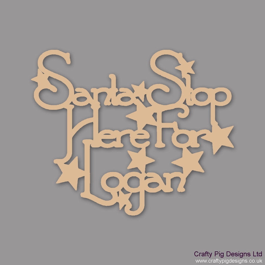 3mm MDF Santa Stop Here Sign with stars (personalised with 1 name)