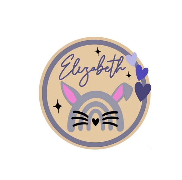Multi-layered bunny ears boho themed rainbow name plaque..