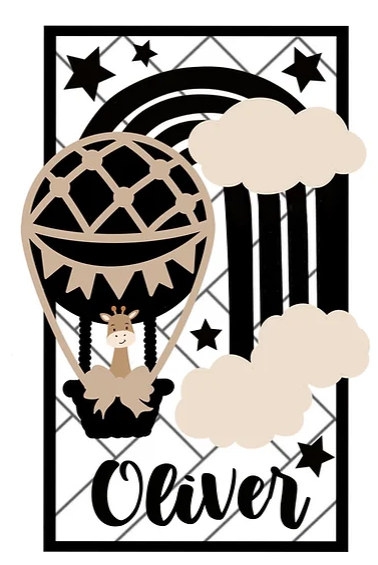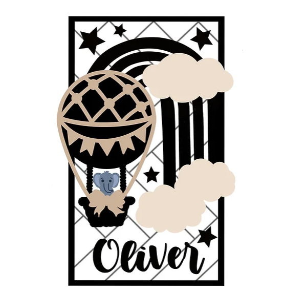 3mm mdf Rectangular Animal Hot Air Balloon Plaque