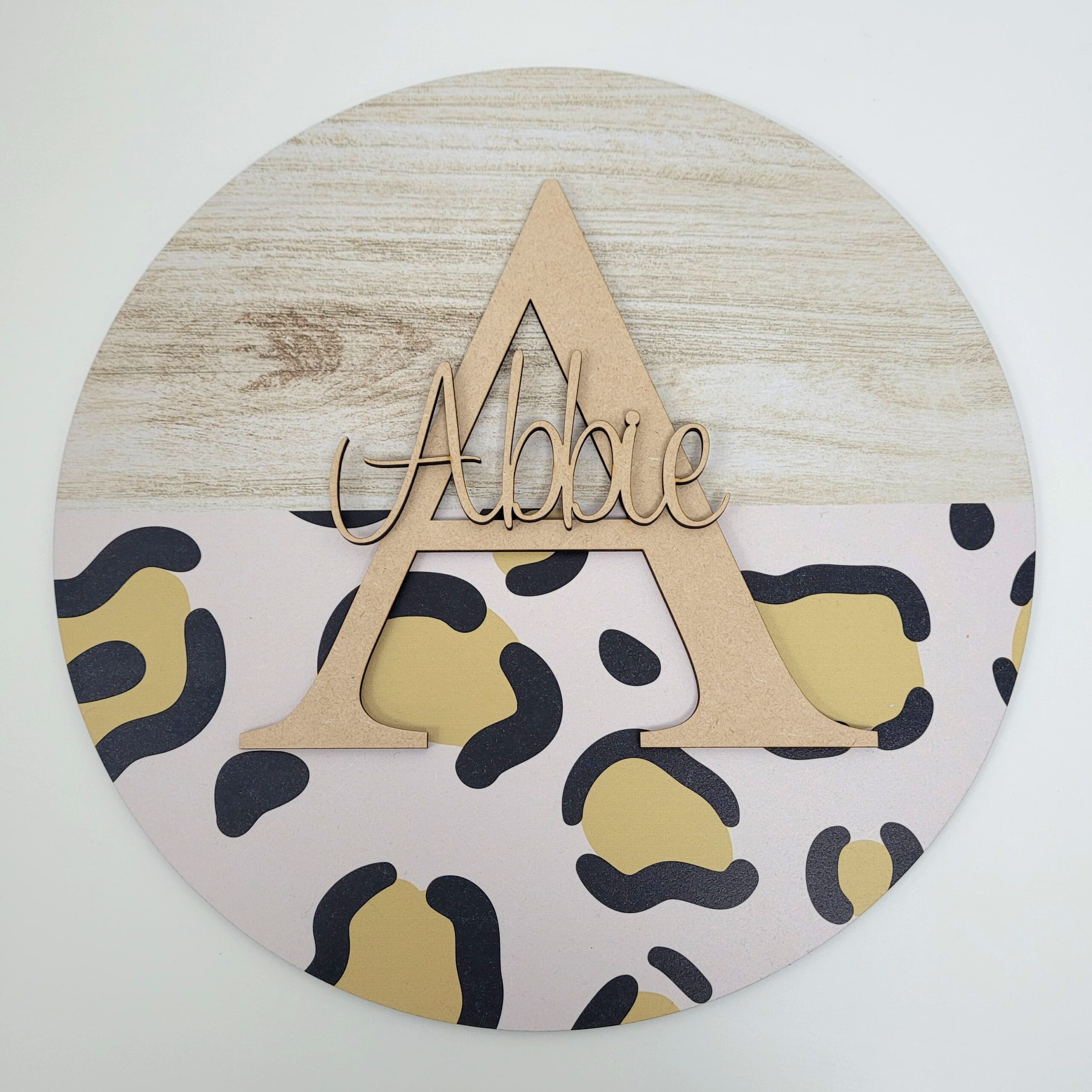 Printed Wood Effect and Pink Leopard Painted Effect with Letter and Name