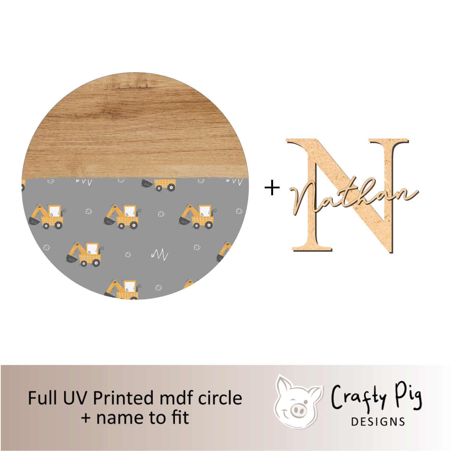 Printed Wood Effect Circle with half Digger Pattern Design with Letter and Name