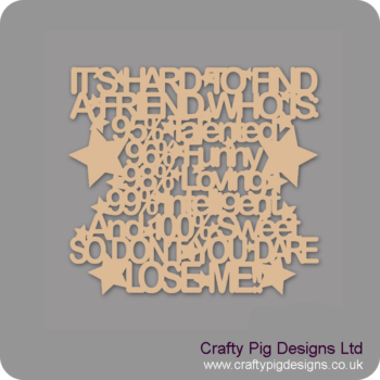 The backboard is in 4mm mdf, the boarder and letters are 4mm mdf and comes with a template for ease of placing the letters.