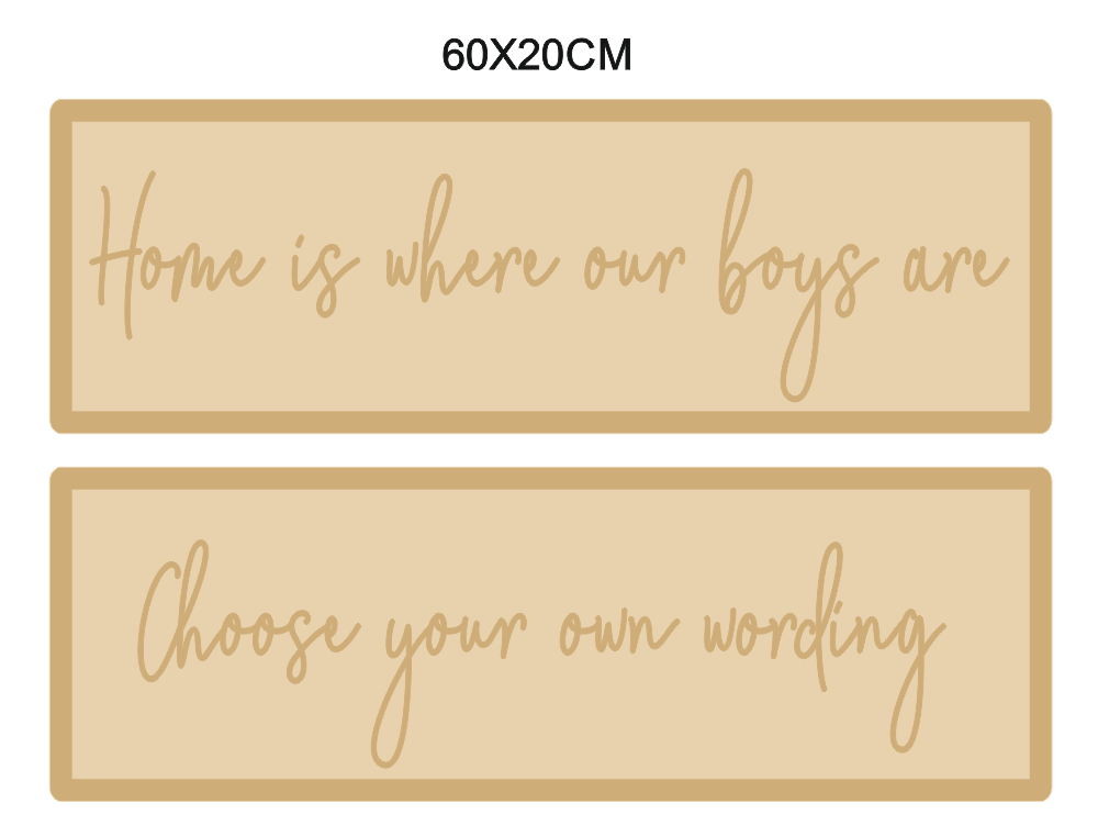 4mm Rectangular Sign Home is where our boys are (WITH OPTIONS) 20cm high – script font