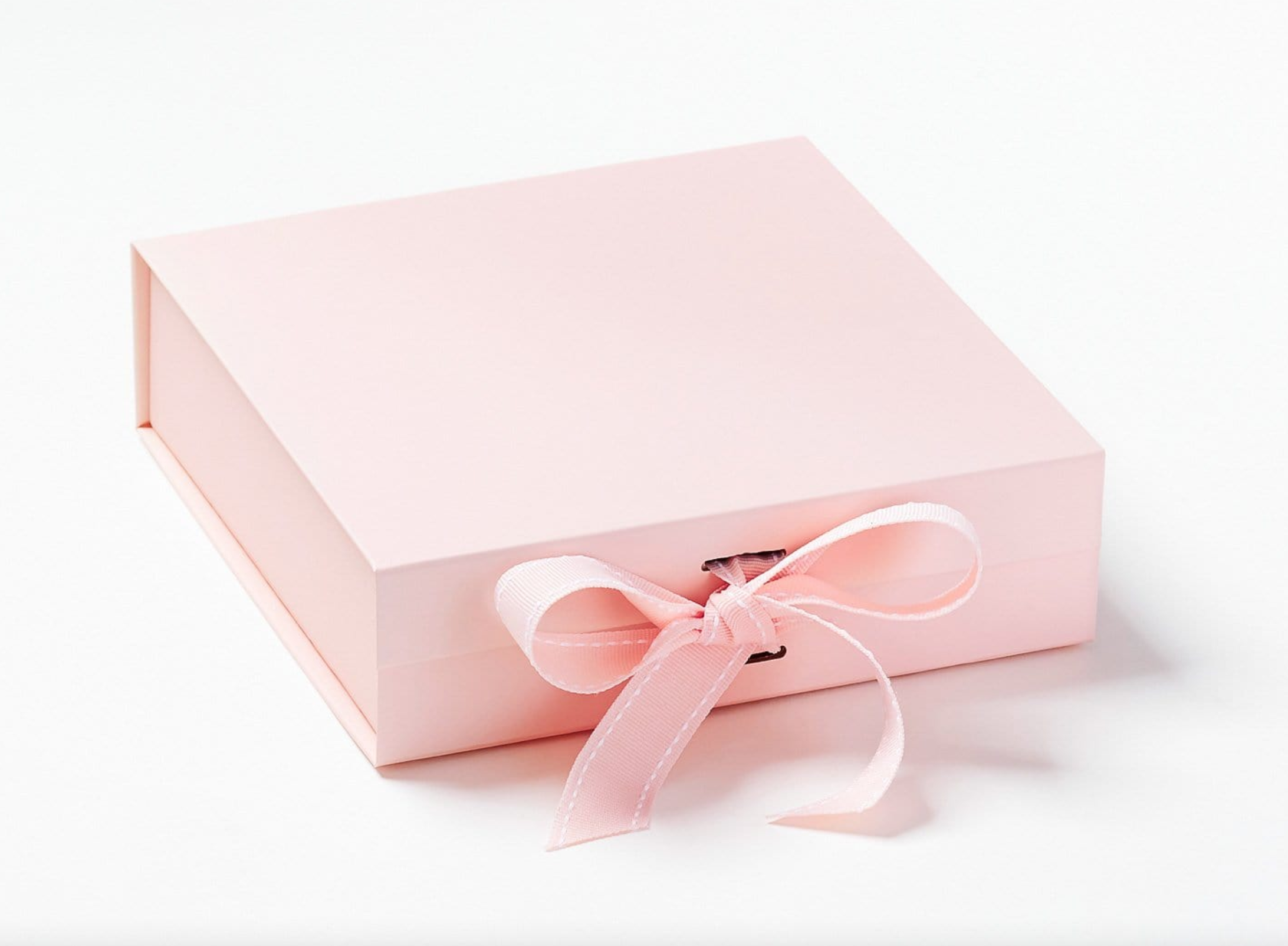 - 80cm length x 2.5cm width red polyester grosgrain ribbon pre-threaded through box body slot. Ribbon can be easily removed and replaced.
